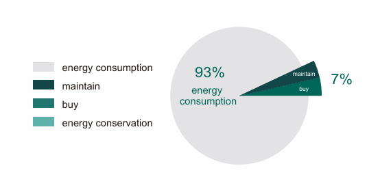 This means that energy efficiency has the greatest impact on long-term operating costs.