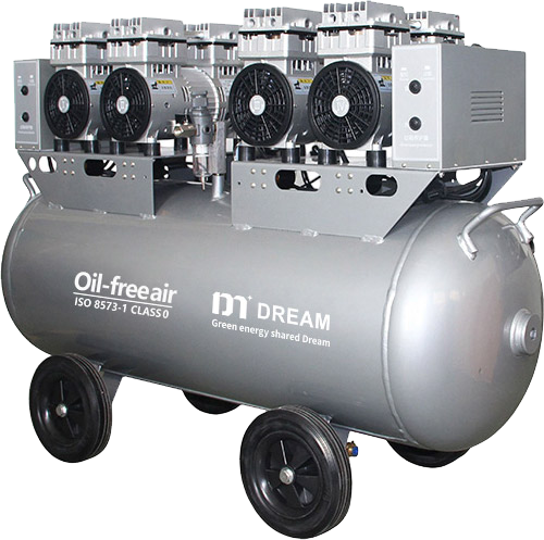 The Dream oil free piston air compressor features slient low-noise cooling system to minimize noise pollution, outlet oil-free, the outlet air is constant and stable, long service life and easy operation, unique soundproof canopy, it is suitable for testing departments such as analysis and testing ,laboratory.